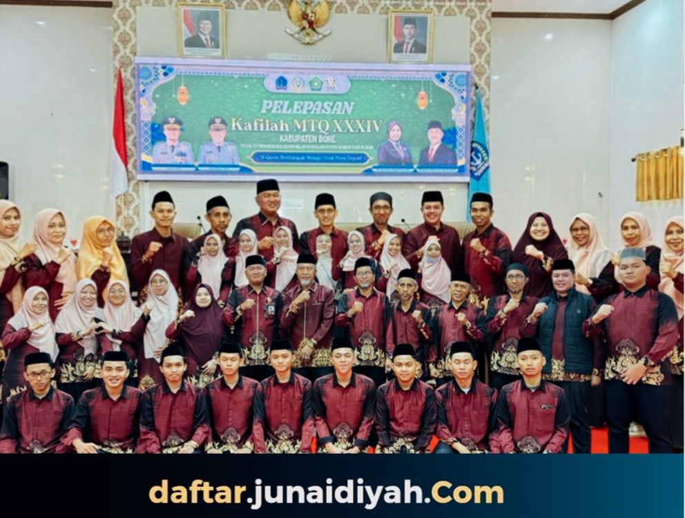 Bertempat di Rumah Jabatan Bupati Bone Aula La Tea Riduni Jalan Petta Ponggawae, 17 santri Pondok Pesantren Modern Al-Junaidiyah Biru dari 39 peserta Bone yang akan bertanding dalam berbagai cabang lomba MTQ nanti, dilepas dalam suasana khidmat.