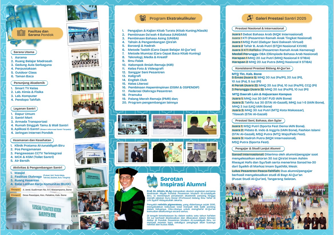 Pondok Pesantren Modern al-Junaidiyah Biru Pondok Pesantren Modern al-Junaidiyah Biru - Official Website Pondok Pesantren Modern al-Junaidiyah Biru, Kabupaten Bone, Provinsi Sulawesi Selatan