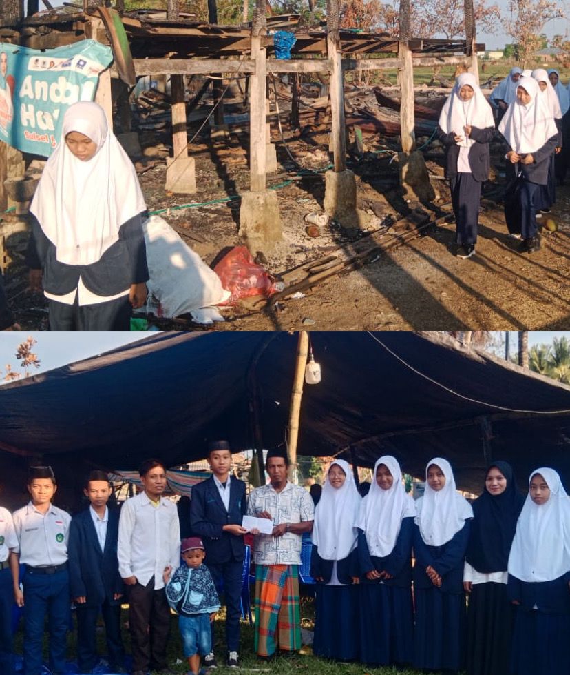 Musibah kebakaran terjadi pada Kamis, 24 Oktober 2024, yang menghanguskan tiga rumah warga di Dusun Nipa. Peristiwa ini menyisakan duka bagi para korban, yang kehilangan harta benda serta tempat tinggal mereka. Menyikapi hal ini, OSIM MTs Ma’had Hadits Al-Junaidiyah berinisiatif untuk memberikan dukungan moral serta bantuan bagi warga terdampak.
