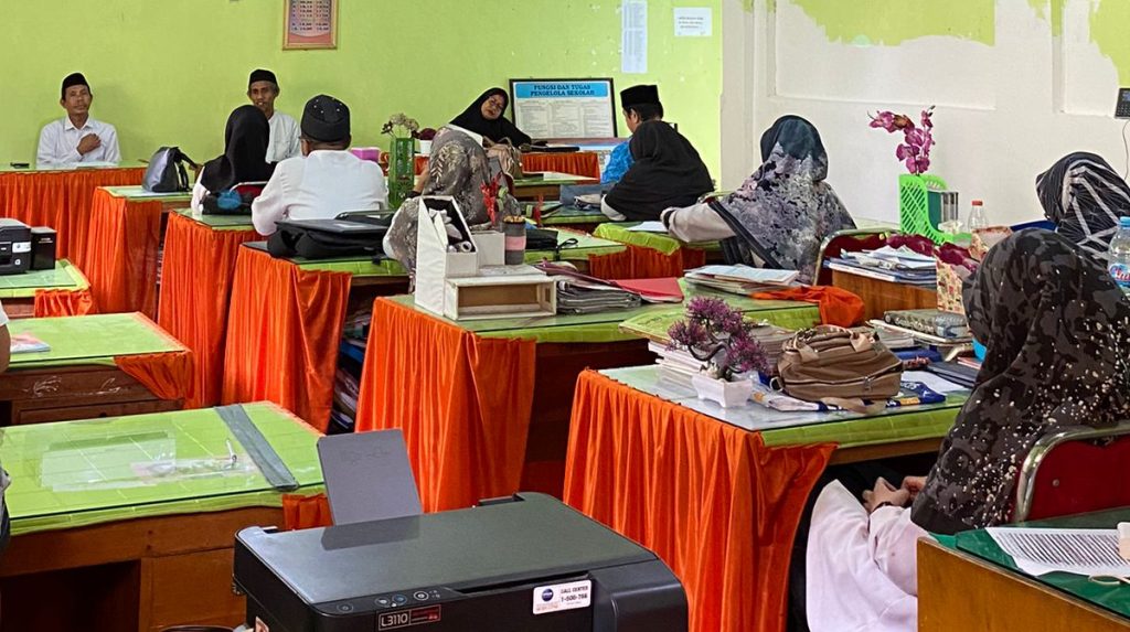 MTs Ma’had Hadits Al-Junaidiyah Biru– Pasca libur semester ganjil tahun pelajaran 2023/2024, Selasa, 02 Januari 2024, bertempat di Ruang Dewan Guru MTs Al-Junaidiyah Biru, digelar rapat yang menghadirkan Pimpinan Pondok, Dr. Abul Khair. Rapat yang dihadiri guru, wakamad, dan staf MTs Ma’had Al-Junaidiyah Biru membahas agenda mengenai evaluasi kegiatan semeter ganjil, laporan wali kelas, pembentukan panitia Ujian Madrasah Bebasis Komputer (UMBK) dan hal lainnya yang dianggap penting. Pimpinan Pondok sampaikan evaluasi bagi MTs Al-Junaidiyah Biru dalam rangka meningkatkan mutu pendidikan.