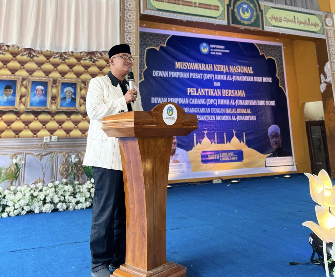 Dewan Pimpinan Pusat (DPP) Rabithah Khirrij Mahad Hadits (RHMH) Al-Junaidiyah Biru, menggelar Musyawarah Kerja Nasional (Mukernas), Pelantikan Bersama Dewan Pengurus Cabang (DPC) RHMH Al-Junaidiyah Biru, serta Halal Bihalal alumni Al-Junaidiyah Biru, di Aula Serbaguna Ponpes Al-Junaidiyah Biru, Sabtu, 05 April 2025.
