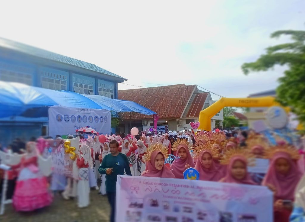 Usai sambutan, Pj. Bupati Bone melepas jalan santai. Riuh gemuruh santri dan santriwati berjalan dengan menggunakan kostum unik, melalui rute sepanjang jalan utama Jend. Sudirman, Sukawati, Sambaloge baru dan kembali finish di Ponpes Al-Junaidiyah Biru.