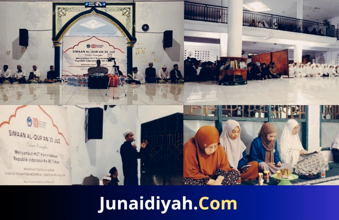 Madrasah Tahfidzul Qur’an (MTaQ) Al-Junaidiyah Biru, menggelar Simaan Al-Qur’an 30 Juz, dalam rangka menyambut HUT Kemerdekaan Republik Indonesia Ke-80 Tahun, 14 s.d 16 Agustus 2025.